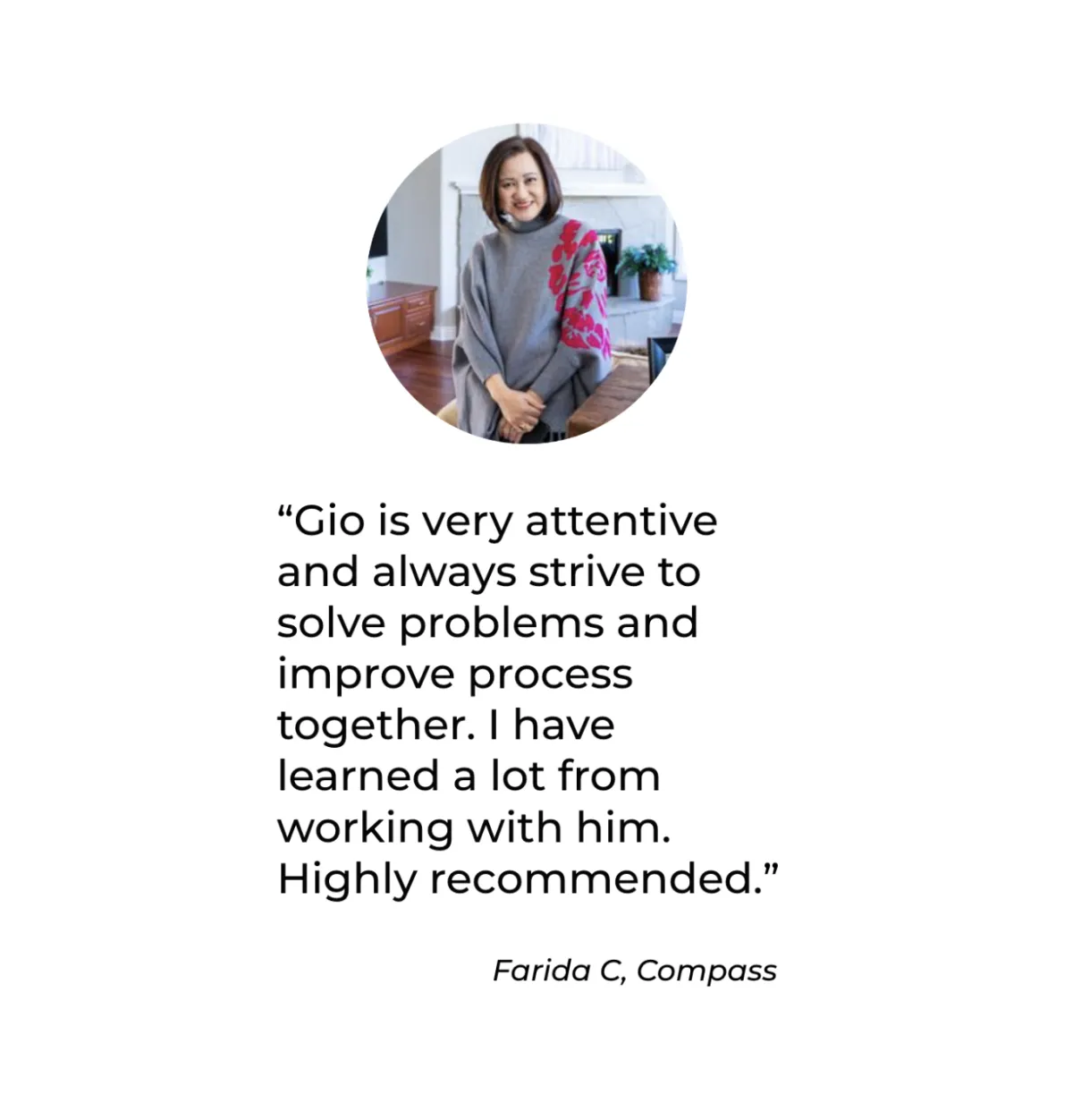 “Gio was super thorough, super responsive, he gave me the breakdown of everything they were going to be able to provide, and they executed it----one after the other...I also liked how the appointments were able to be booked without me having to do anything....I definitely look forward to continuing working with Gio as he's definitely outperformed my expectations.”